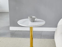 GOYA CERAMIC GUERIDON TABLE WITH WHITE MARBLE TOP AND GOLD FEETS MEASURING 44X44X50CM ,