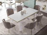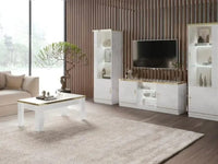 MINA LIVING ROOM SET IN BEIGE AND GOLD INCLUDES 6 PIECES ( SIDEBOARD-183X47X86 DISPLAY CABINET DOOR 2-1 - 119X47X184CM / 60X47X184 CM , DINNING TABLE 160/200X90X78CM , TV CABINET 150X47X65CM , COFFEE TABLE - 110X60X45CM)