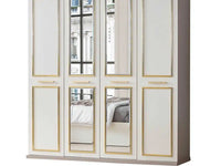 PARIS WARDROBE WITH BEIGE AND GOLD FINISH WITH AND MIRROR AND 4 DOORS.MEASUIRNG 180X60X205CM