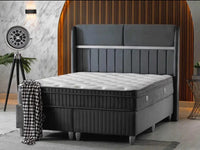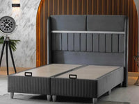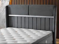 ESTELLE BASE SET 140X190CM IN GREY VELVET WITH SILVER ELEGANT DESIGN ON HEADBOARD WITH CANAPE INCLUDES (WITHOUT MATRESS)