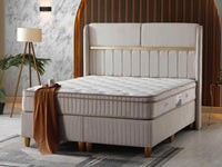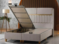 ESTELLE BASE SET 160X200CM IN BEIGE VELVET WITH GOLD ELEGANT DESIGN ON HEADBOARD WITH CANAPE INCLUDES (WITHOUT MATRESS)