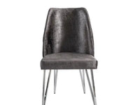 NICOLE CHAIRS IN DARK GREY VELVET SEAT AND SILVER FEETS.