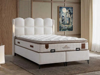 TIFFANY BASE SET 140X190CM IN BEIGE FABRIC AND ELEGANT DESIGN ON HAEDBOARD WITH CANAPE INCLUDES (WITHOUT MATRESS)